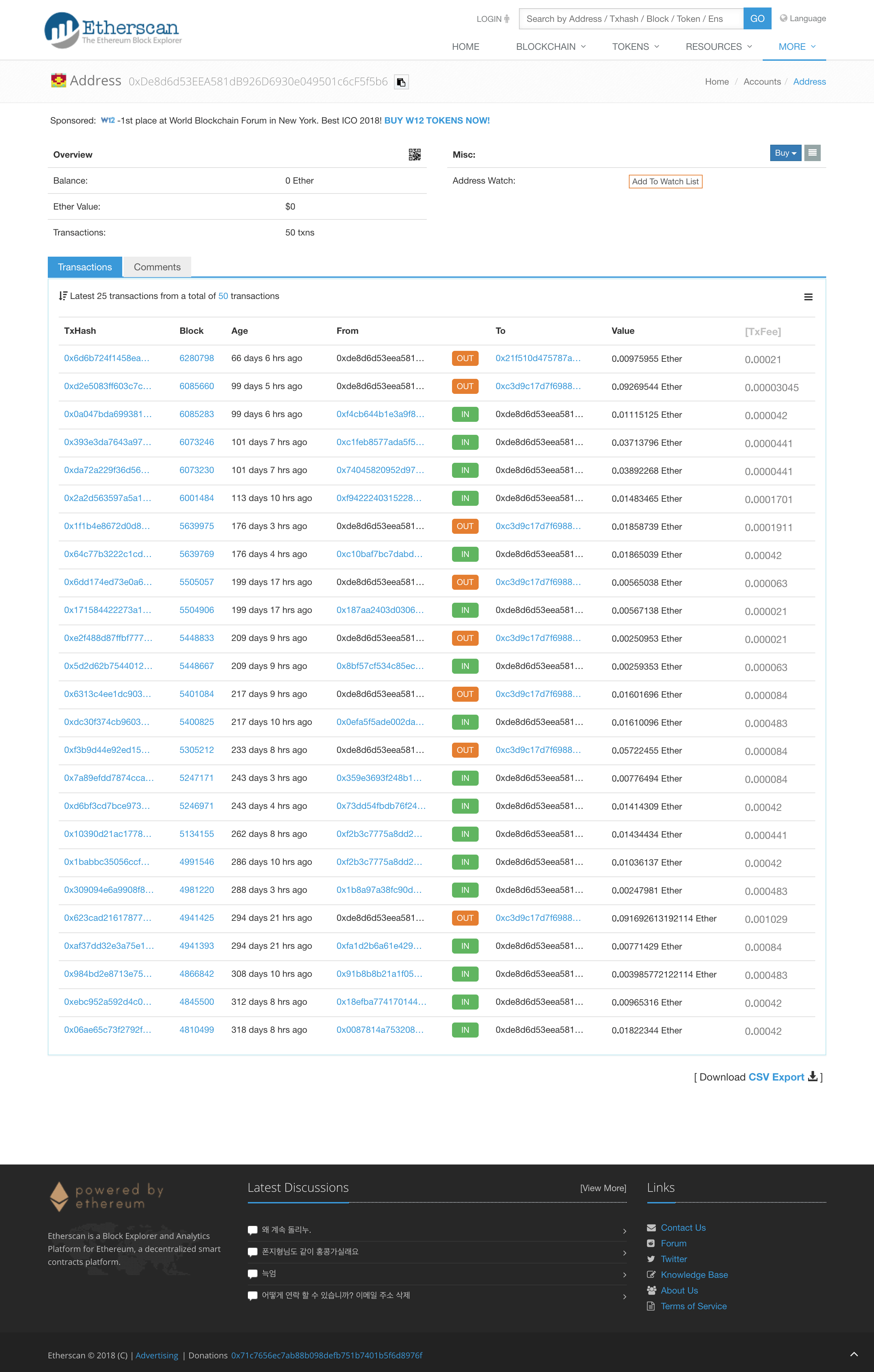 上一張圖片下一張圖片 CoinCake-etherscan-io-address-0xde8d6d53eea581db926d6930e049501c6cf5f5b6-2018-11-11-21_21_44