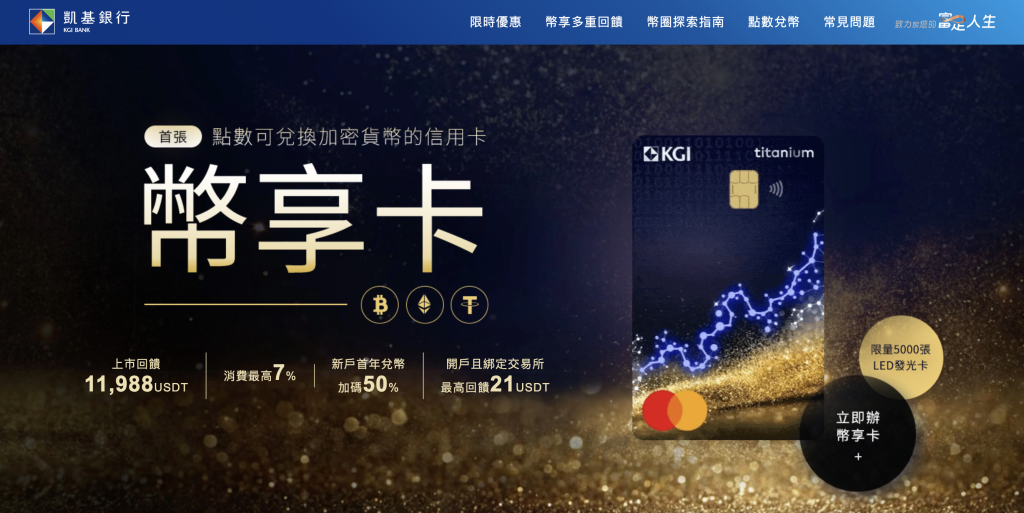 ◆凱基銀行近期推出「台灣首張可兌換加密貨幣的信用卡」。