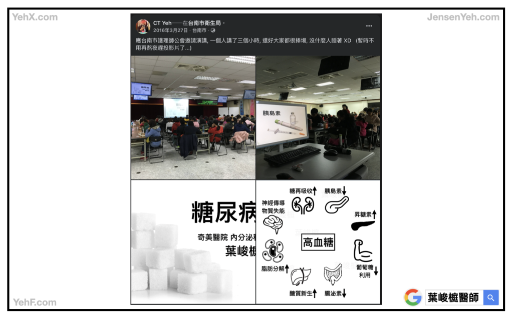我人生中第一場醫療院所以外的公開演講,是在2016年03月27日,受台南市護理師公會邀請,到台南市衛生局演講。