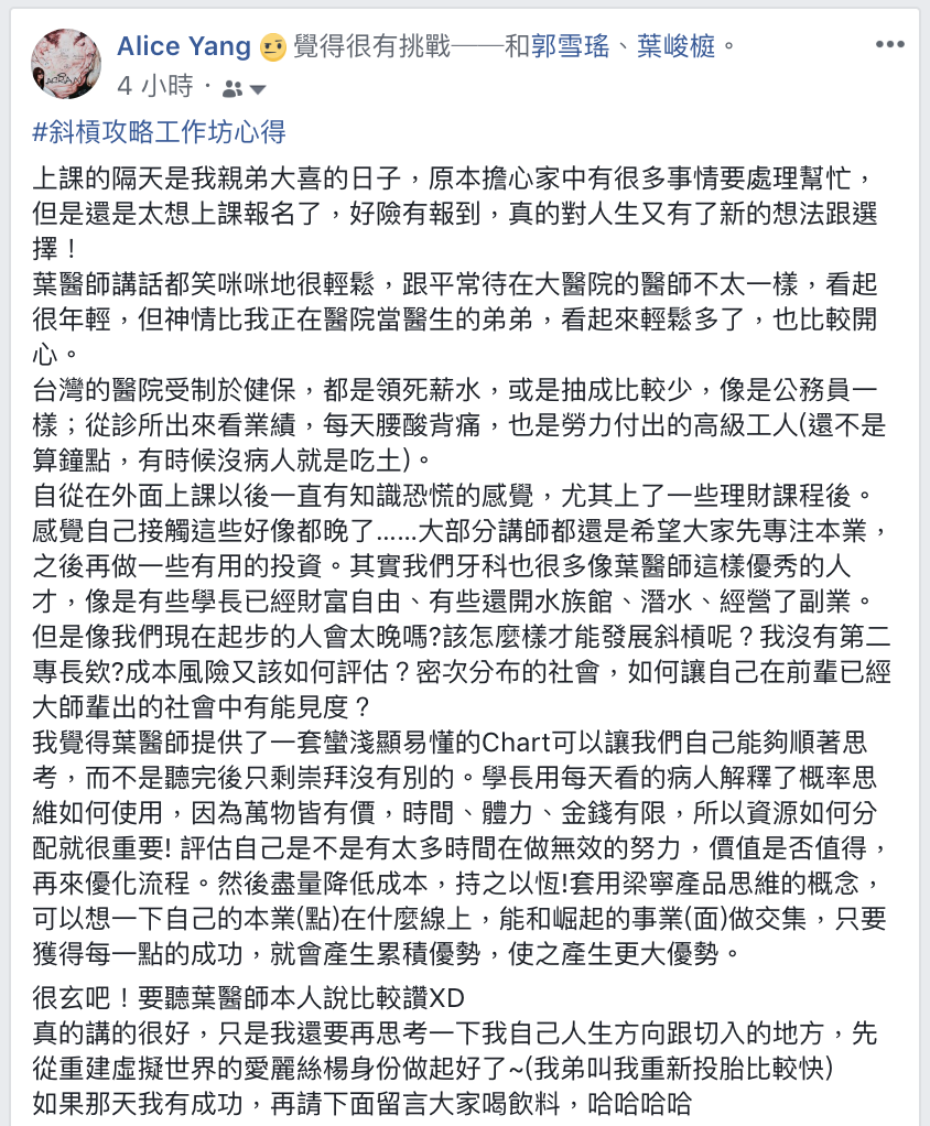 上層內容:《斜槓攻略工作坊》其實,應該是我現階段人生的小總結…