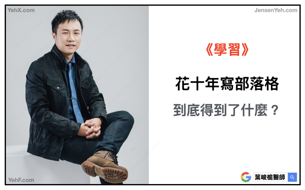 回首這十年,在醫療本業的高壓環境下,還能經營兩個部落格,而且沒有停下腳步,完全是當初的我都不敢想像的經歷。