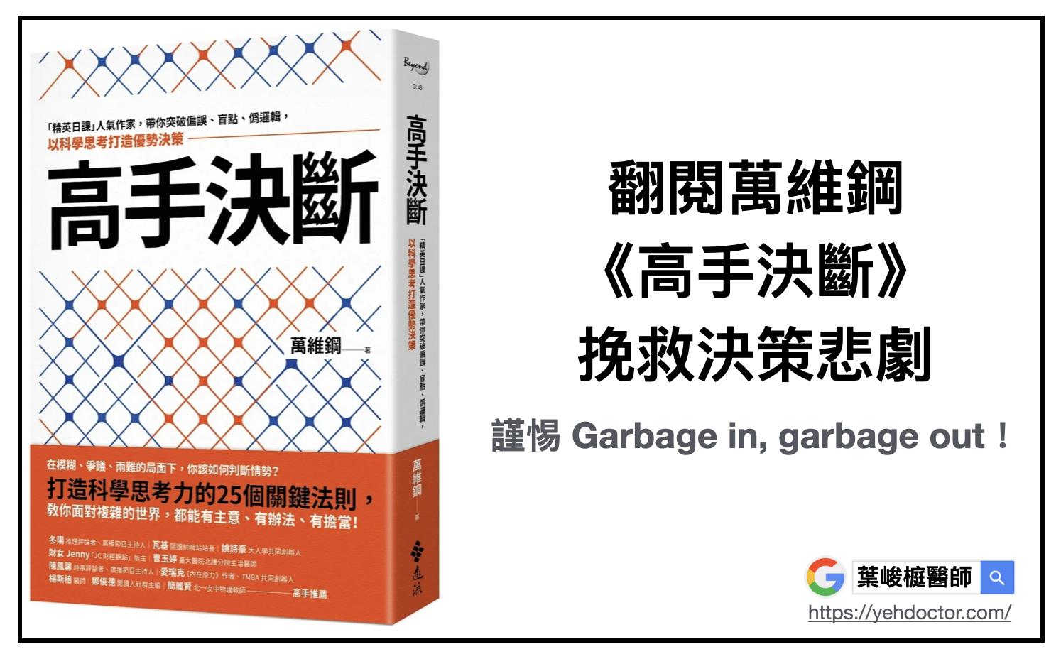謹惕 Garbage in, garbage out!翻閱萬維鋼《高手決斷》挽救決策悲劇。